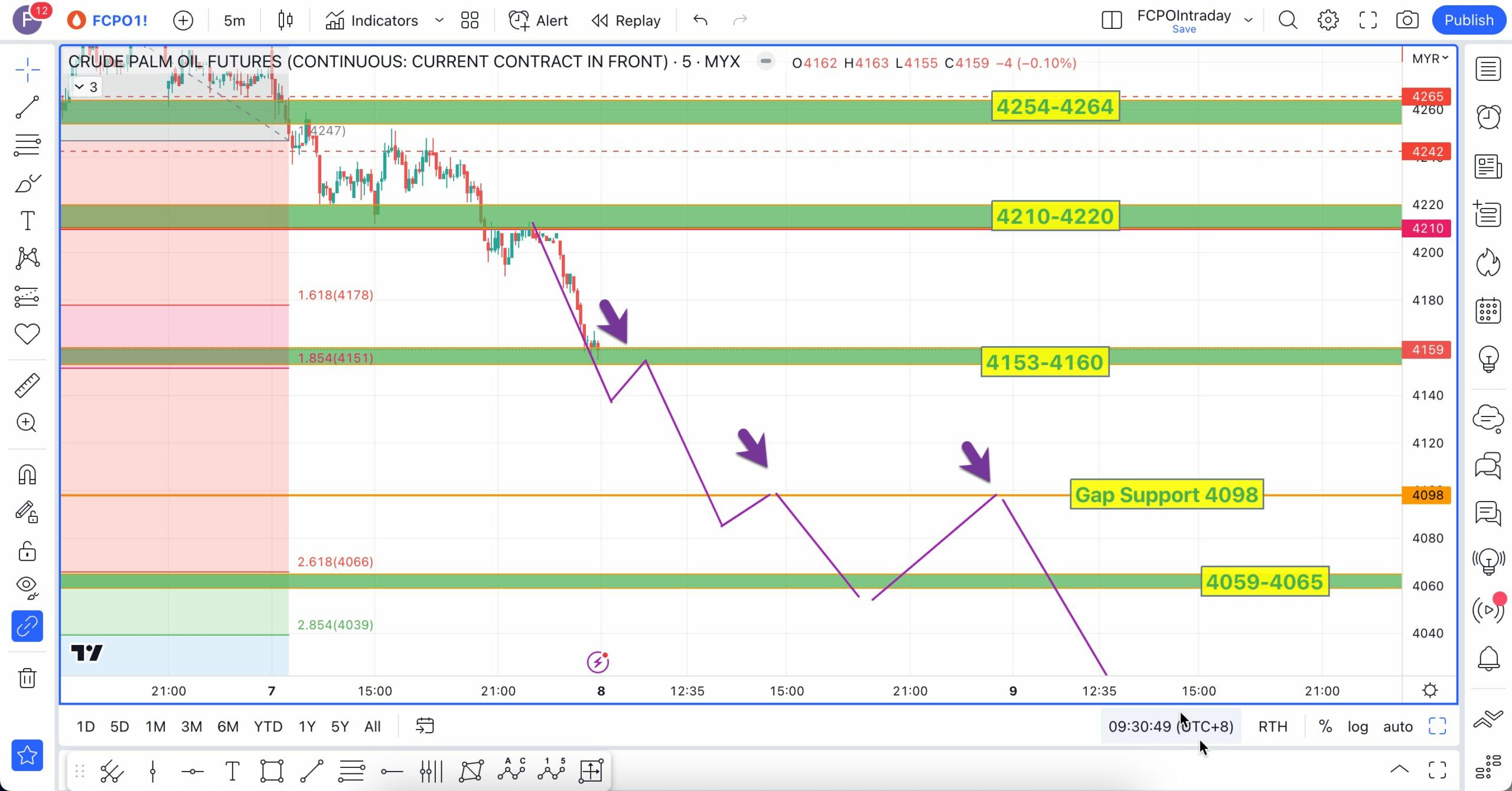 Oleh sebab itu, dalam analisa sebelum market buka. Ada jangkaan ke bawah seperti ini. Iaitu, gap bawah support 4152-4161. Pullback untuk entry sell.