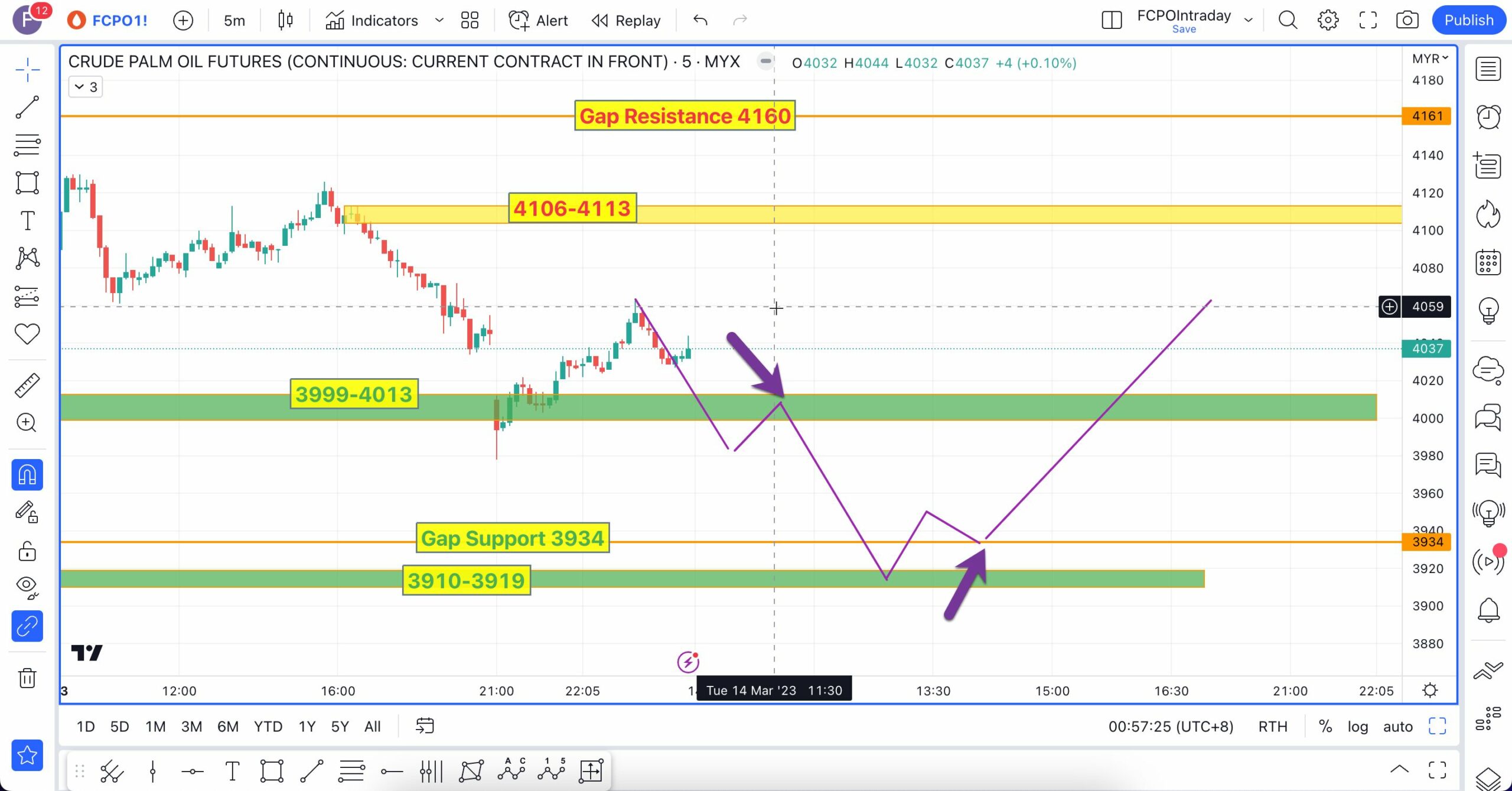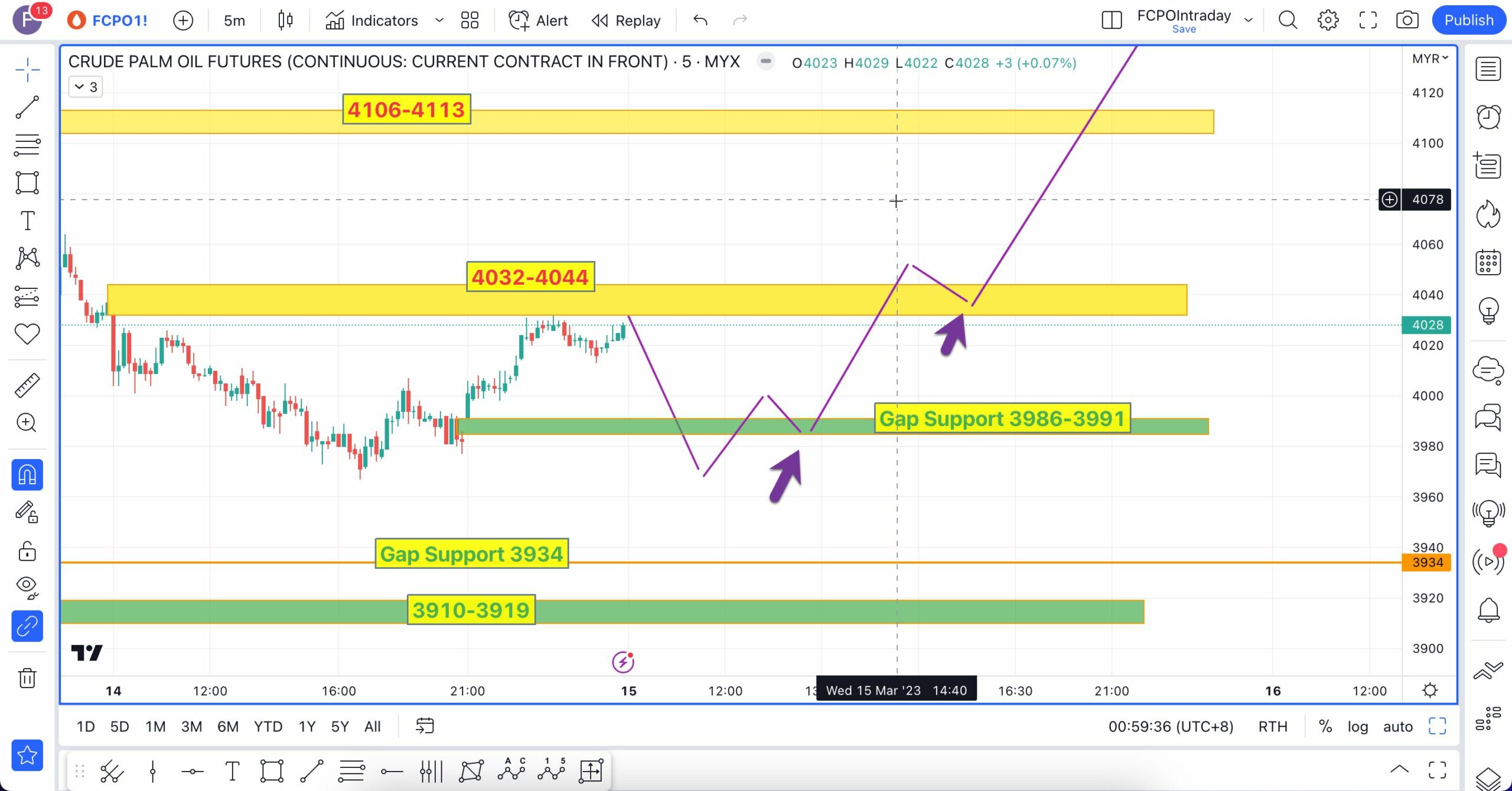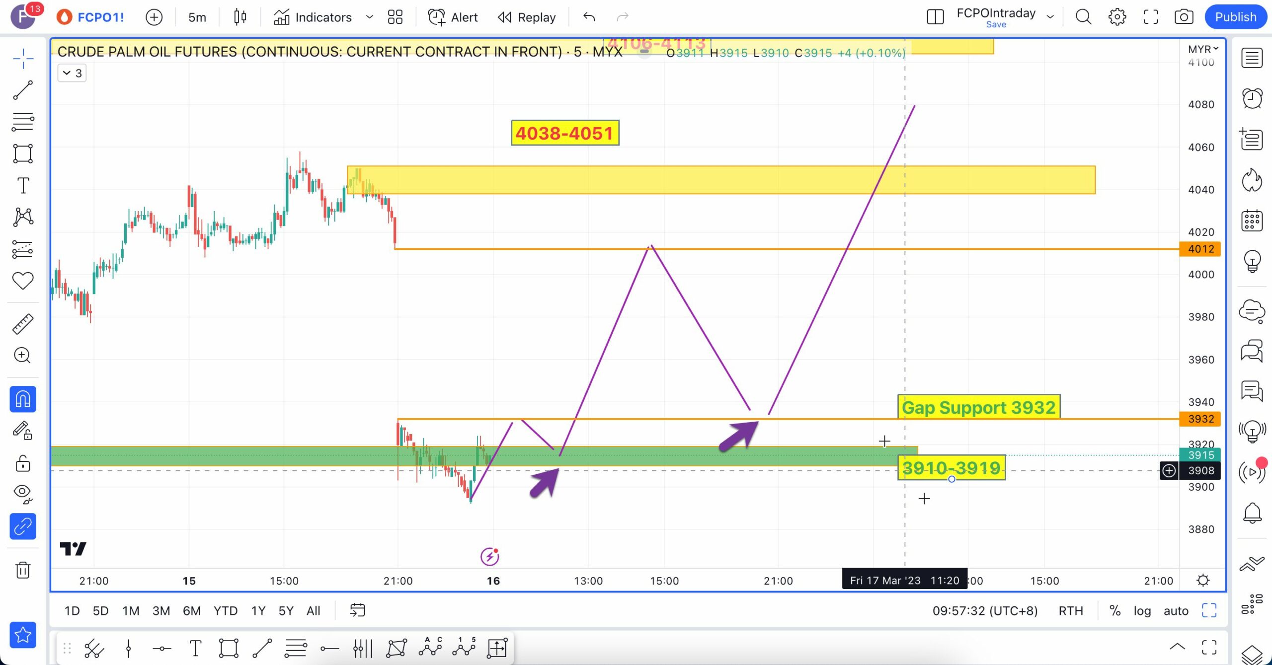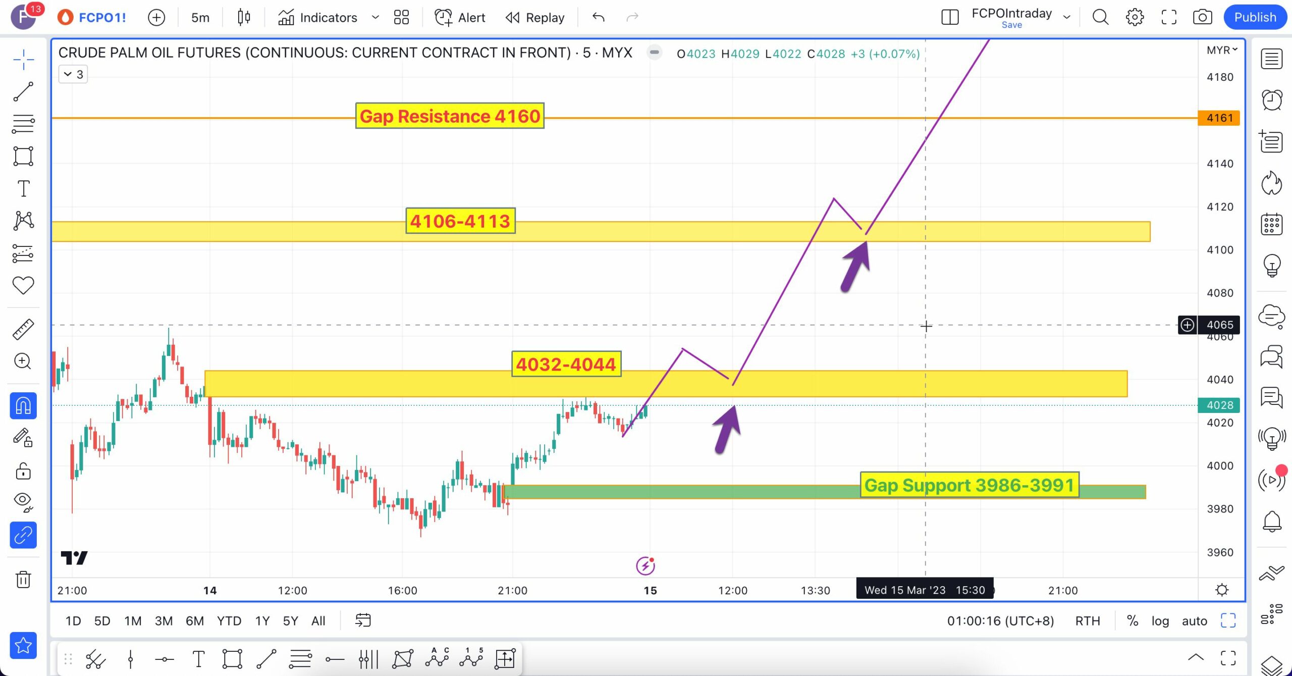 Analisa berikut telah dibuat pada 16 Mac 2023 sebelum market FCPO buka lebih kurang pada pukul 9:04 AM