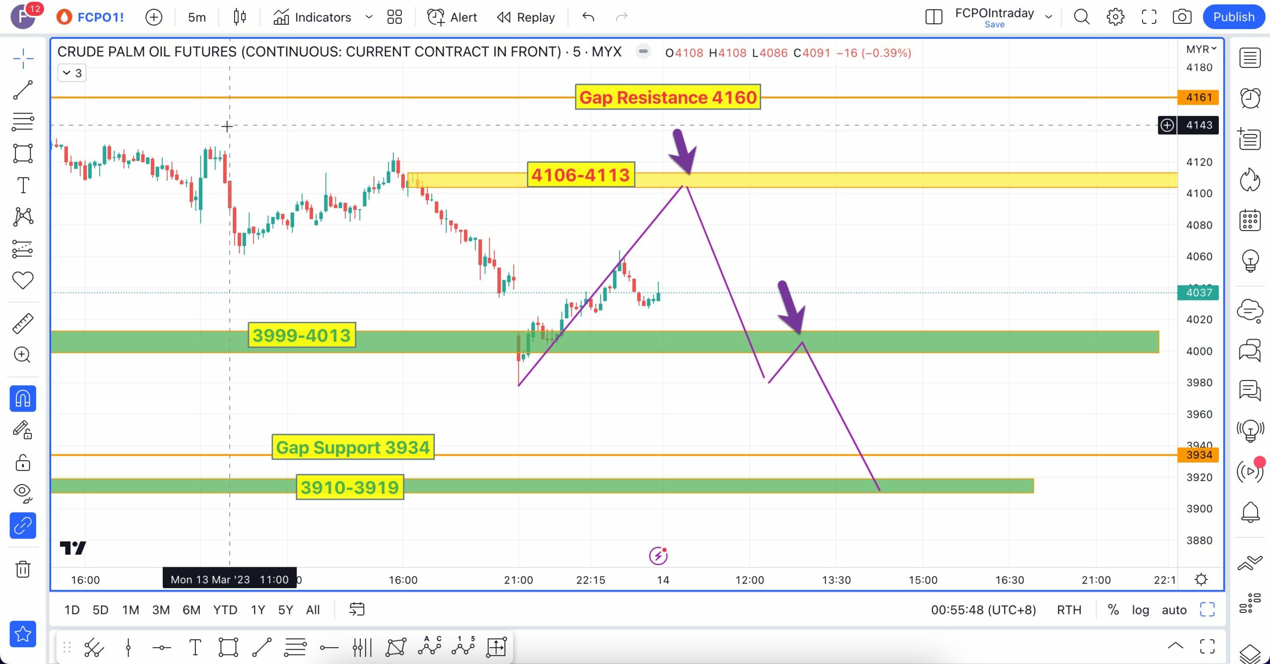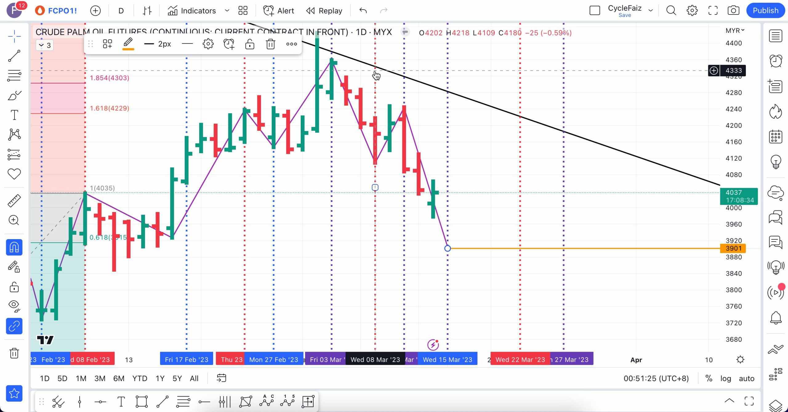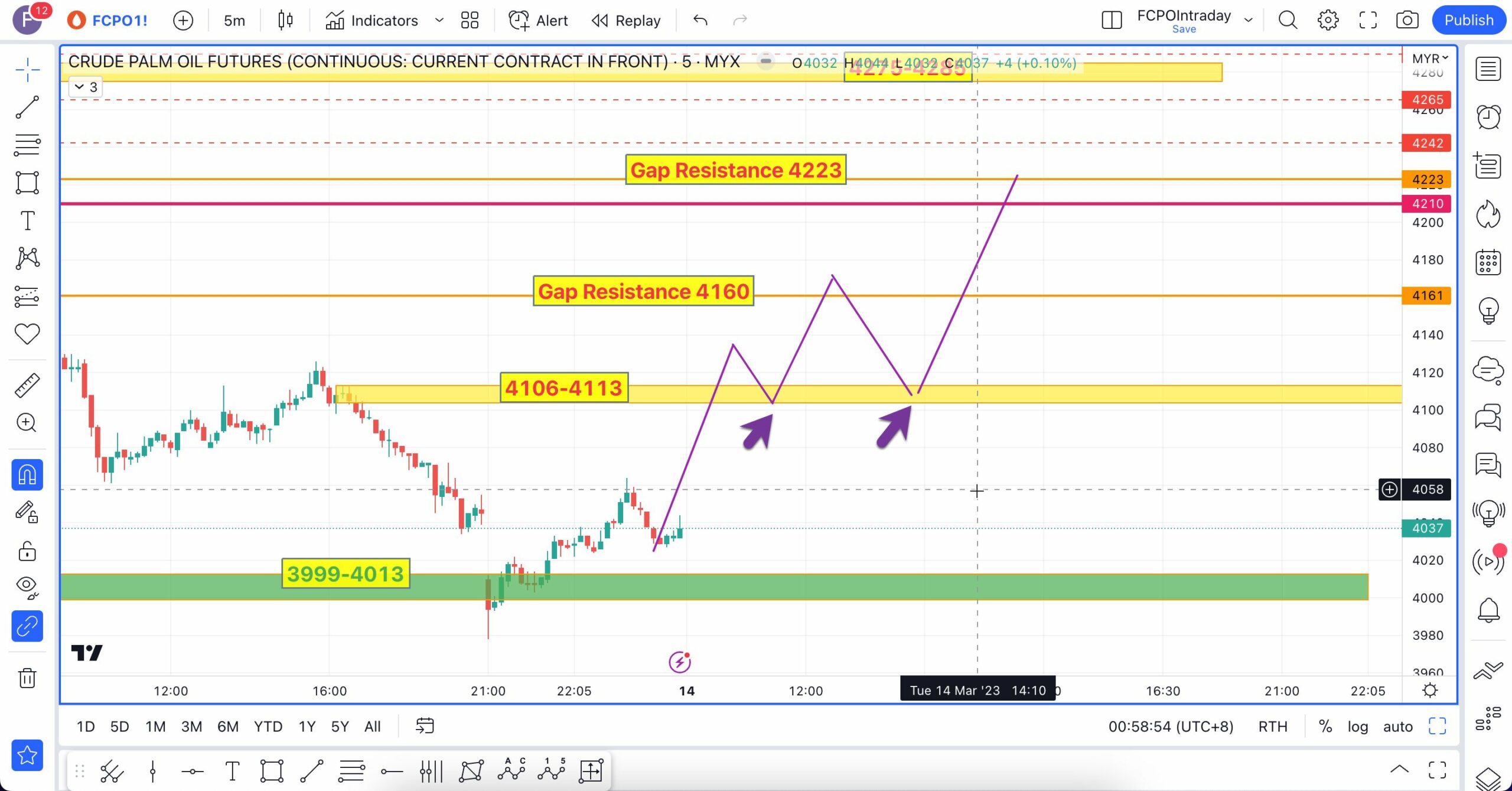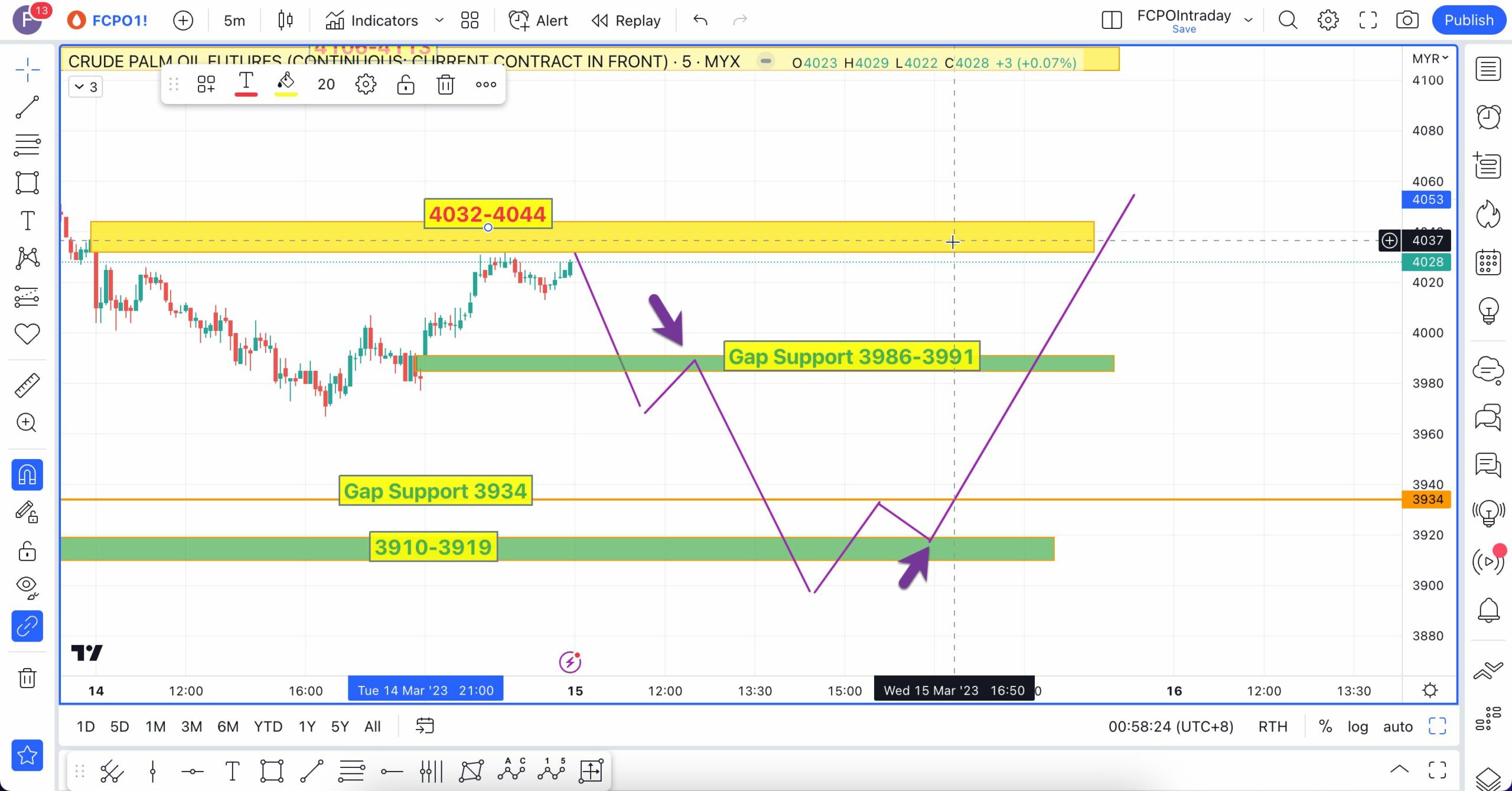 Analisa berikut telah dibuat pada 16 Mac 2023 sebelum market FCPO buka lebih kurang pada pukul 9:04 AM