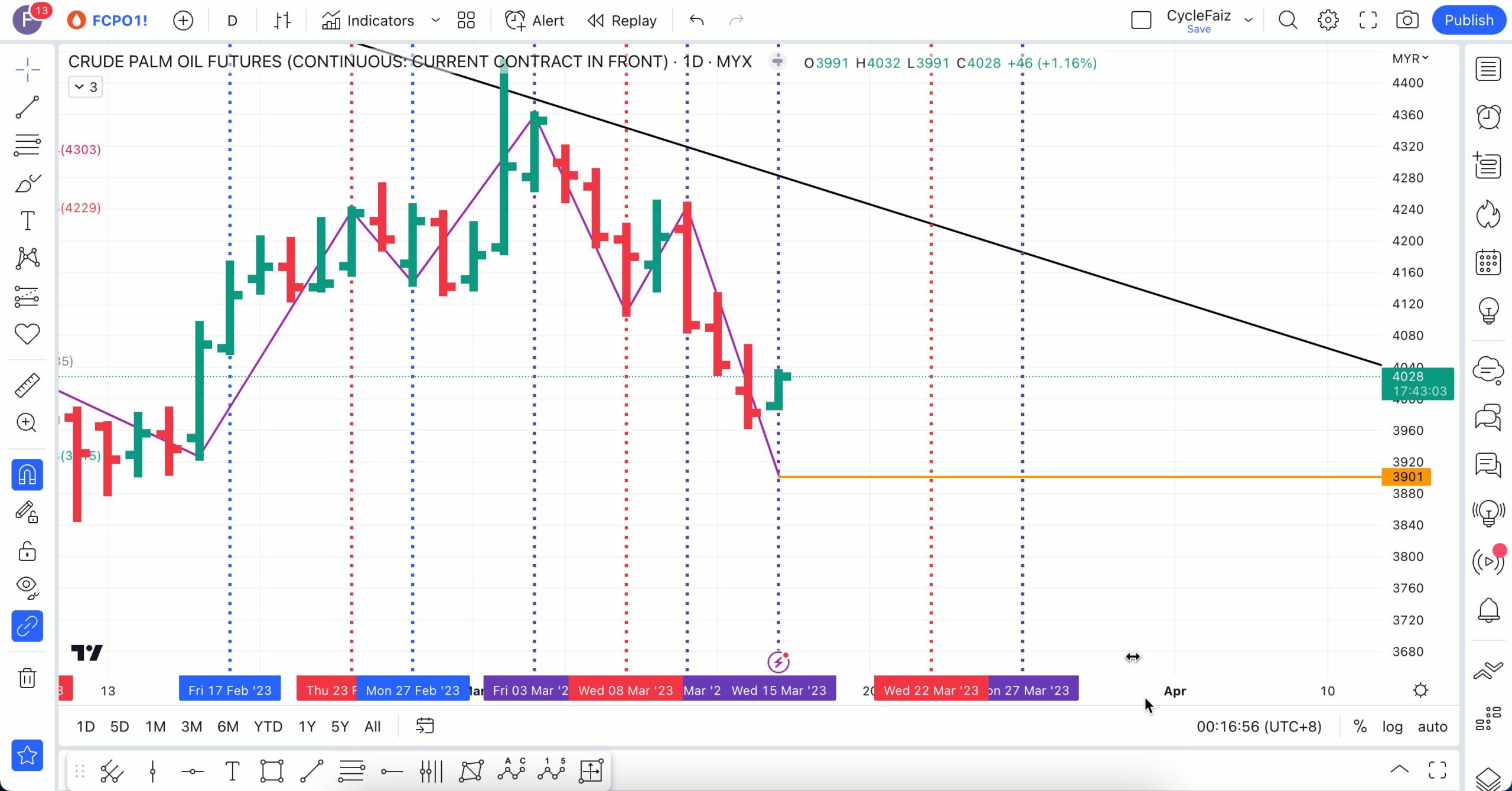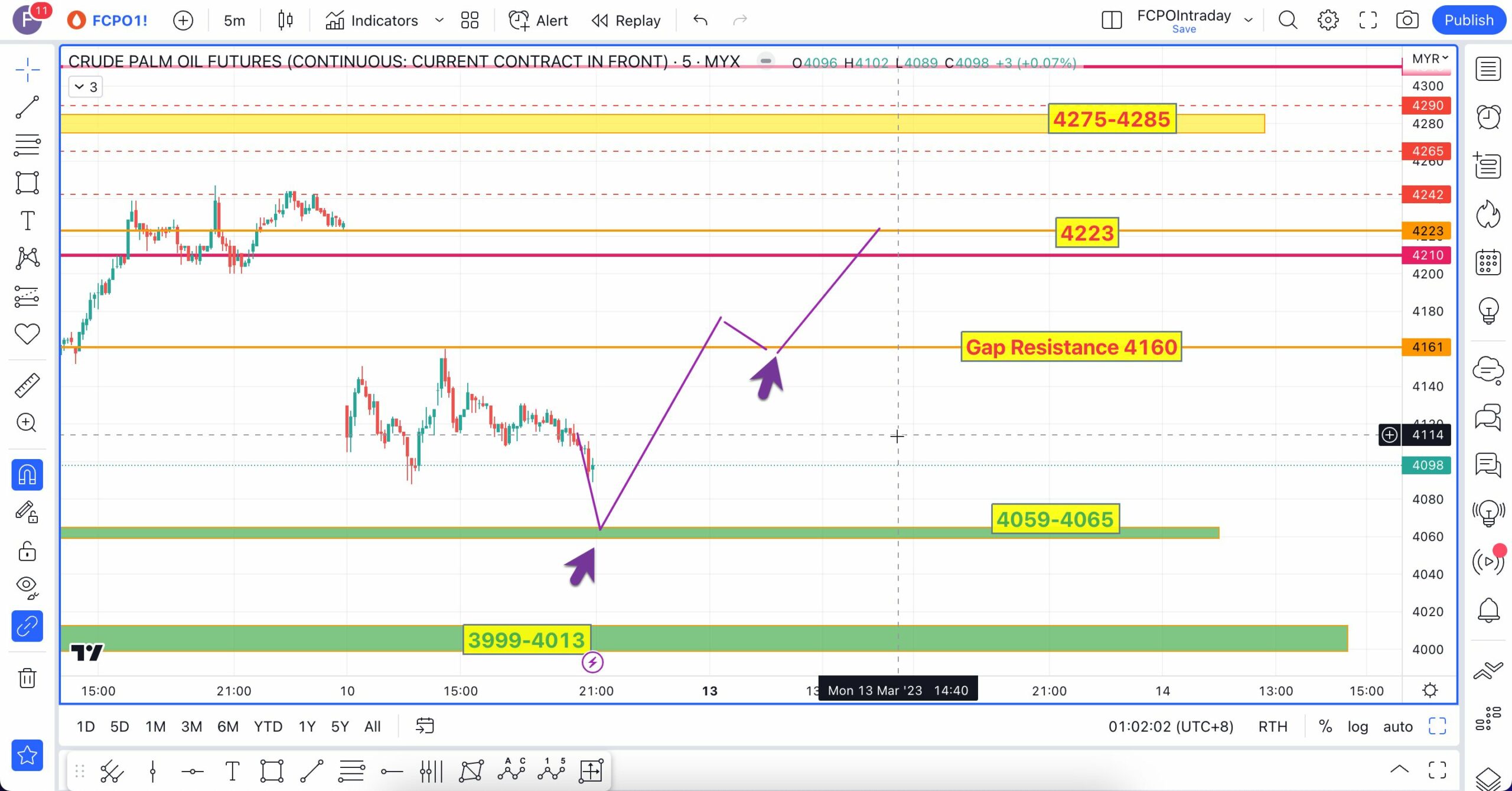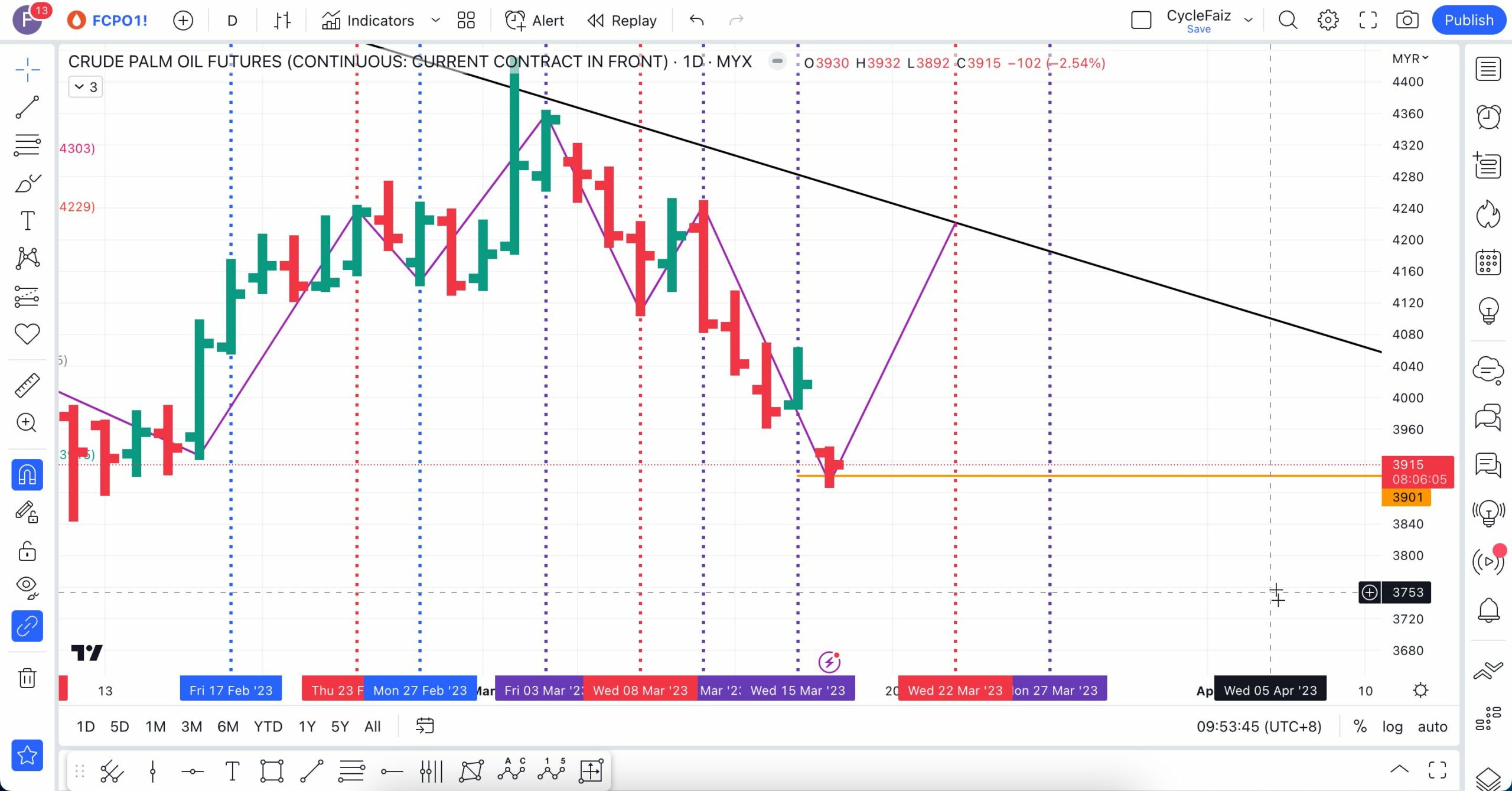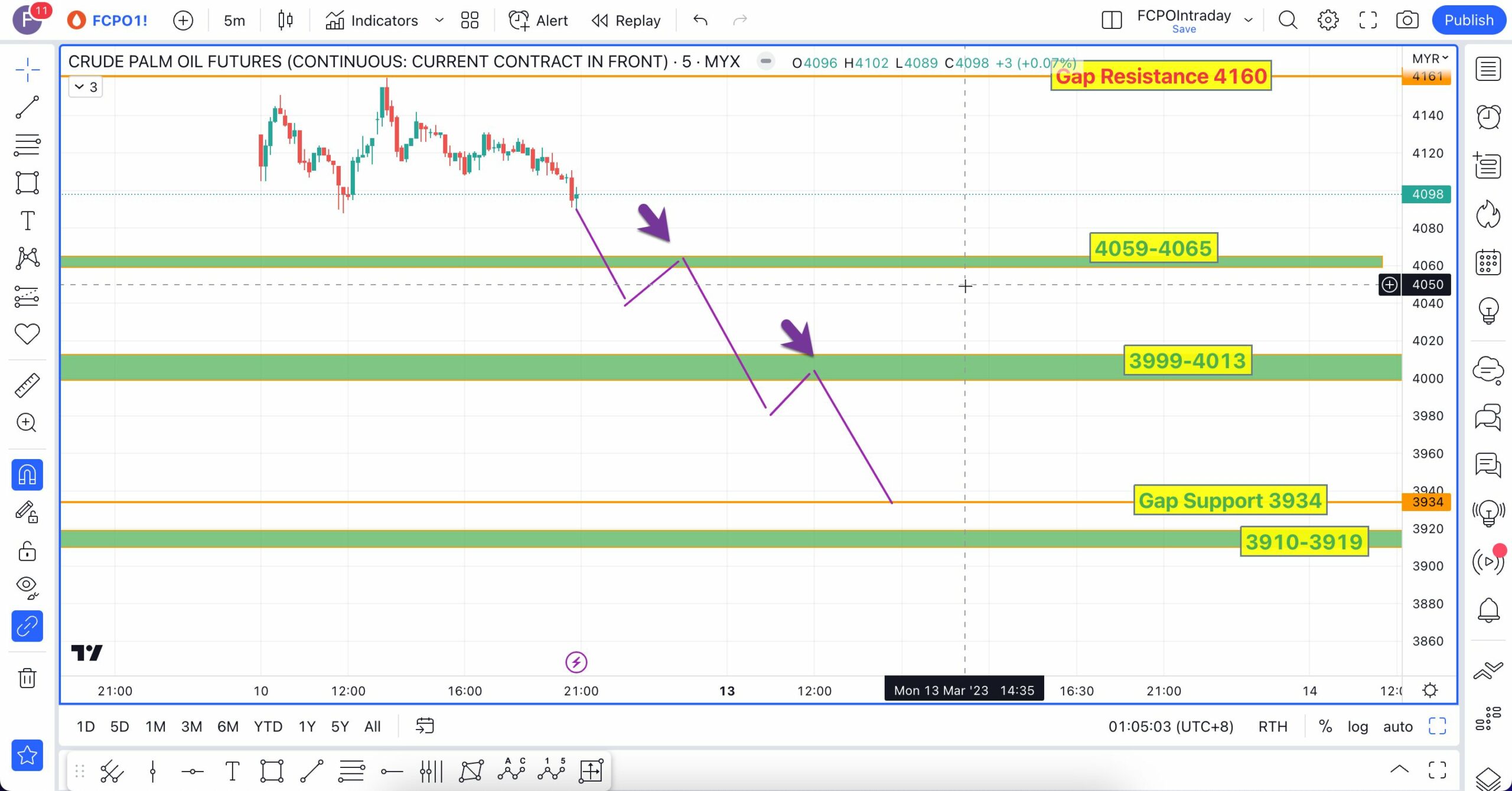 Analisa berikut telah dibuat pada 16 Mac 2023 sebelum market FCPO buka lebih kurang pada pukul 9:04 AM