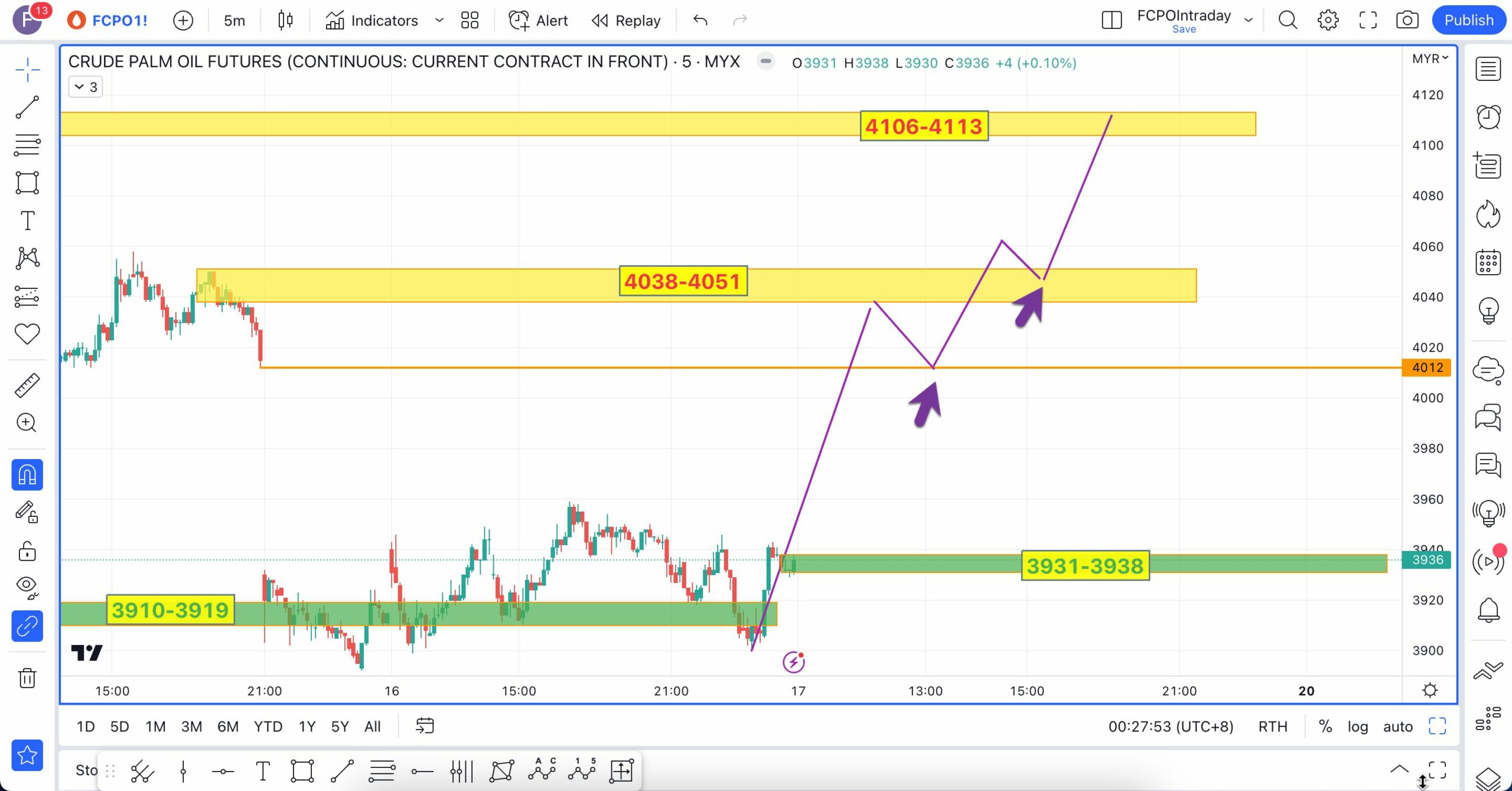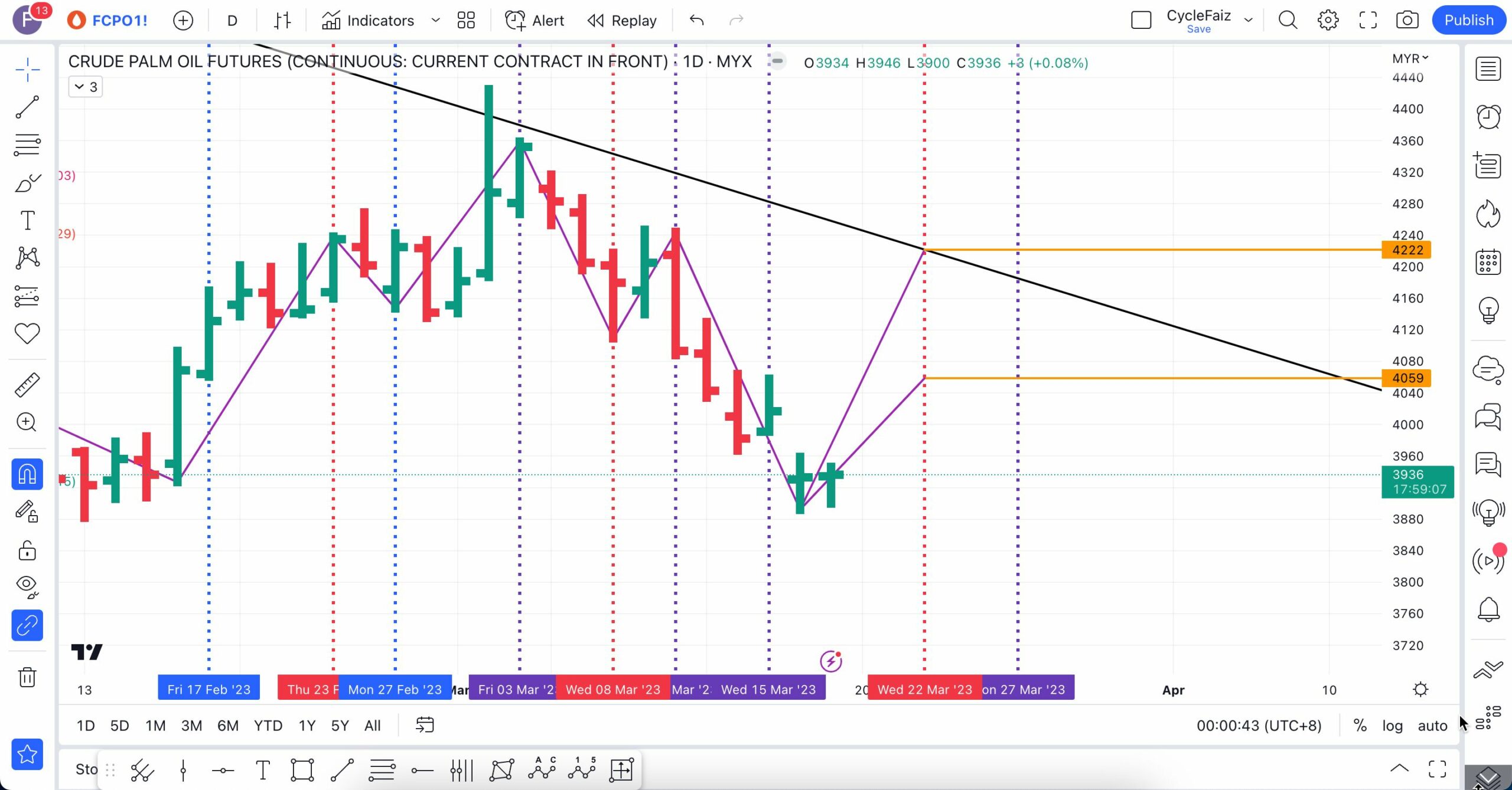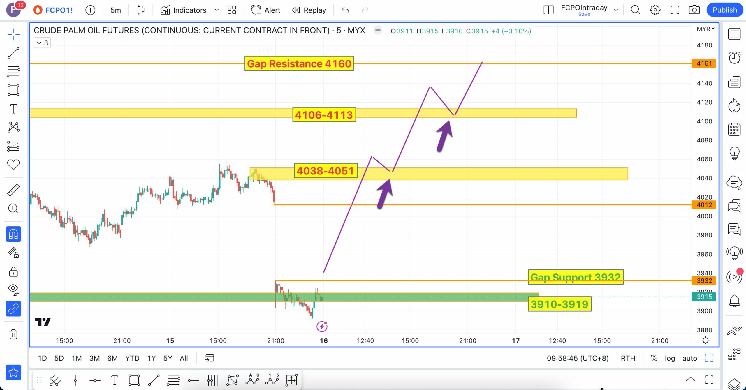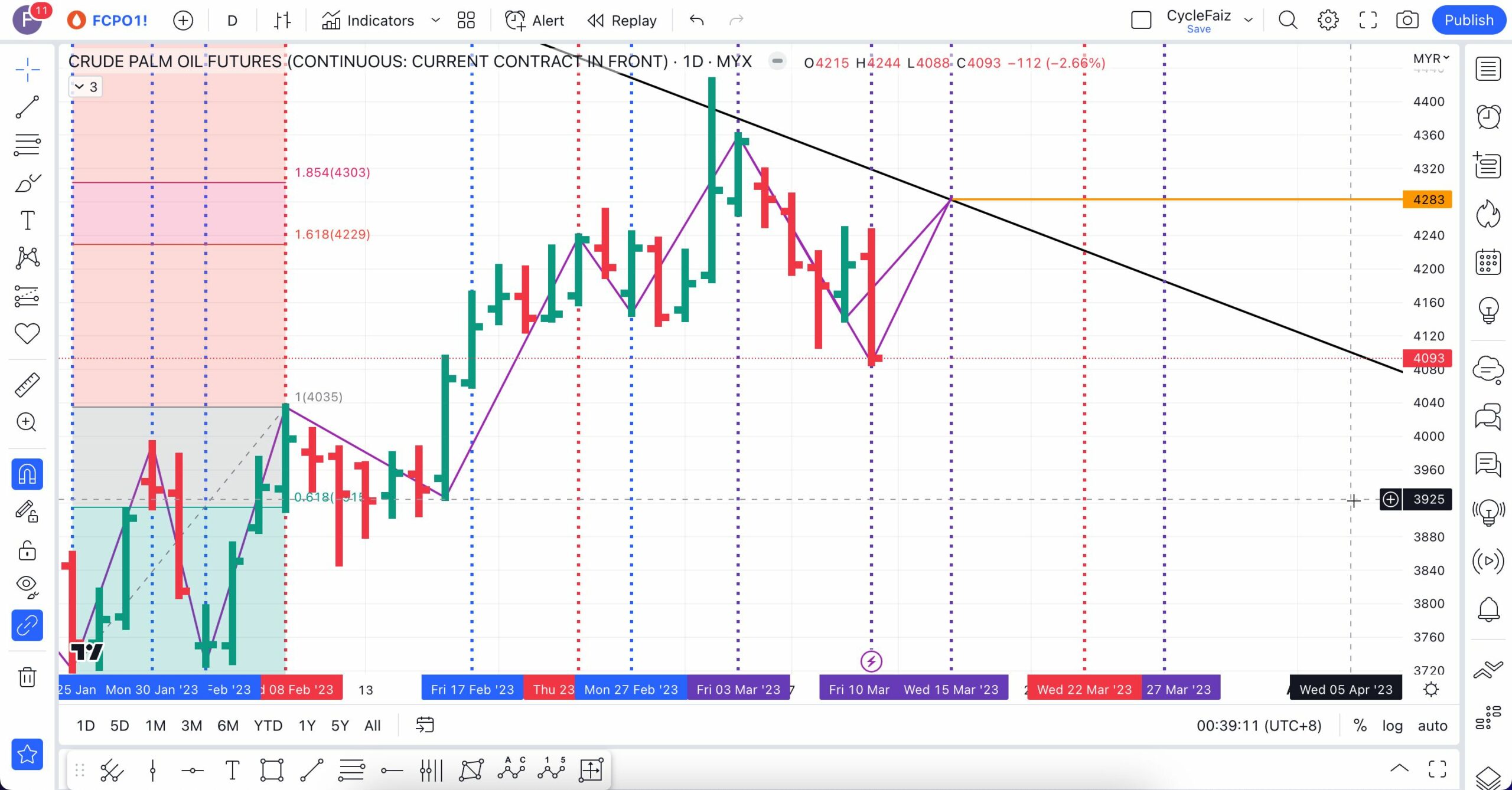 Analisa berikut telah dibuat pada 16 Mac 2023 sebelum market FCPO buka lebih kurang pada pukul 9:04 AM