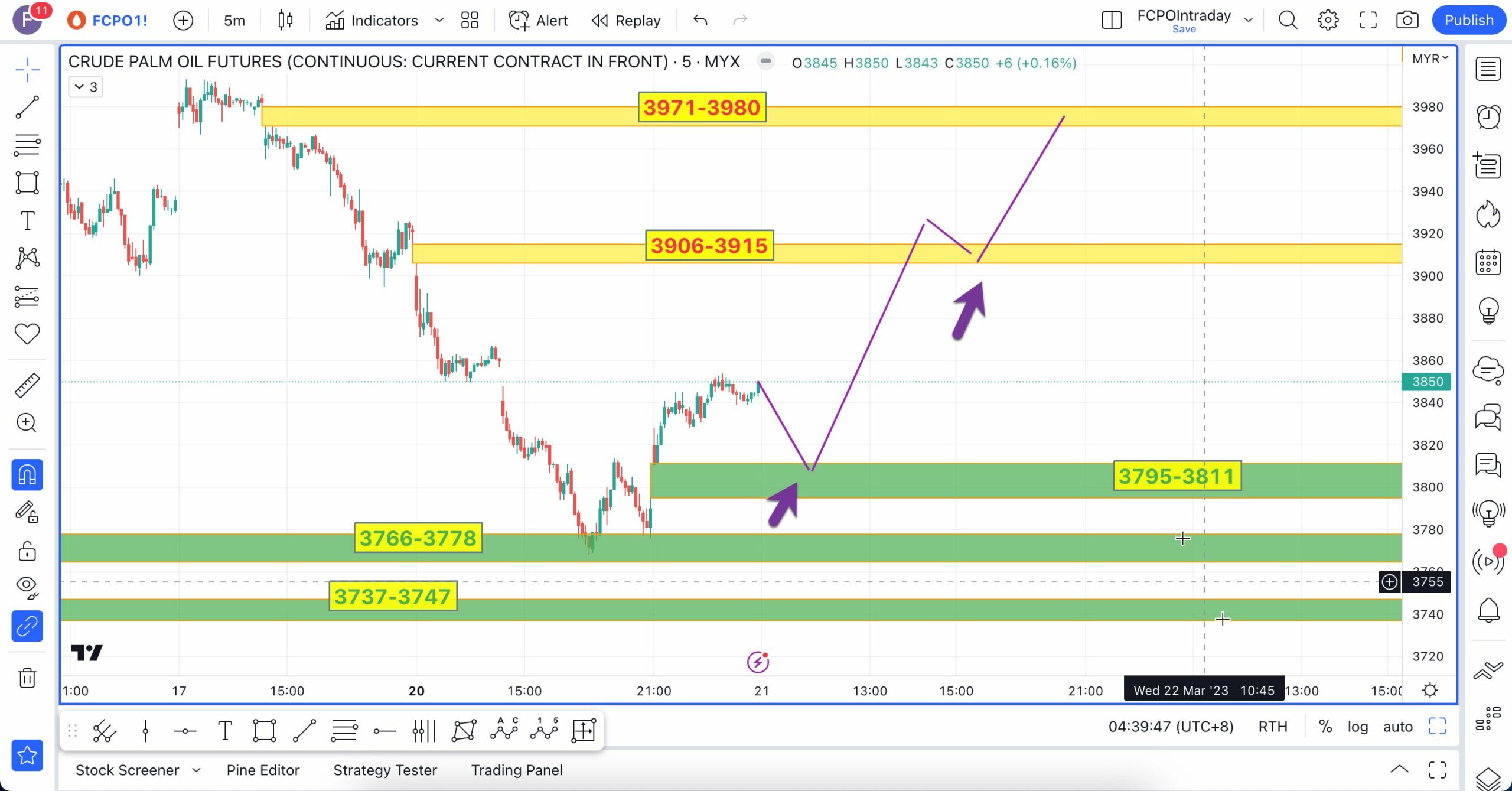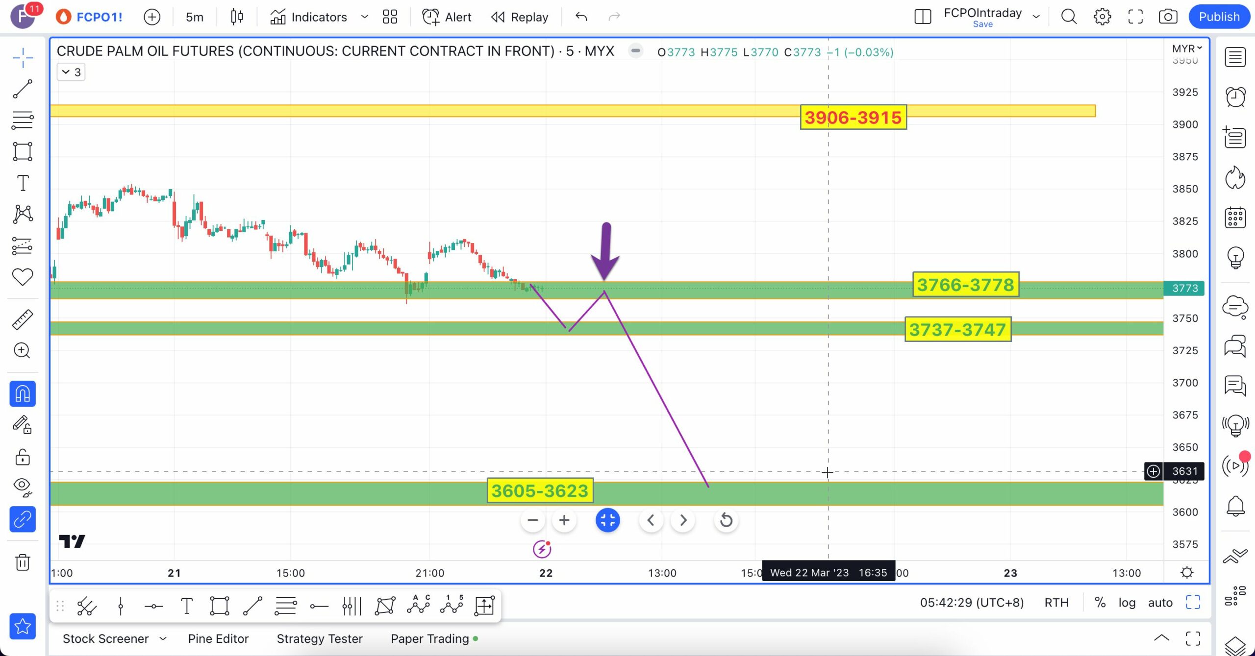 Unexpected movement telah berlaku pada hari ini (20 Mac 2023). Pergerakan market tak tally dengan forecast date & direction. No worries, as long as support & resistance zone ada, masih boleh take action accordingly. Price movement masih respect zone support & resistance yang dibuat lebih awal sebelum market buka.