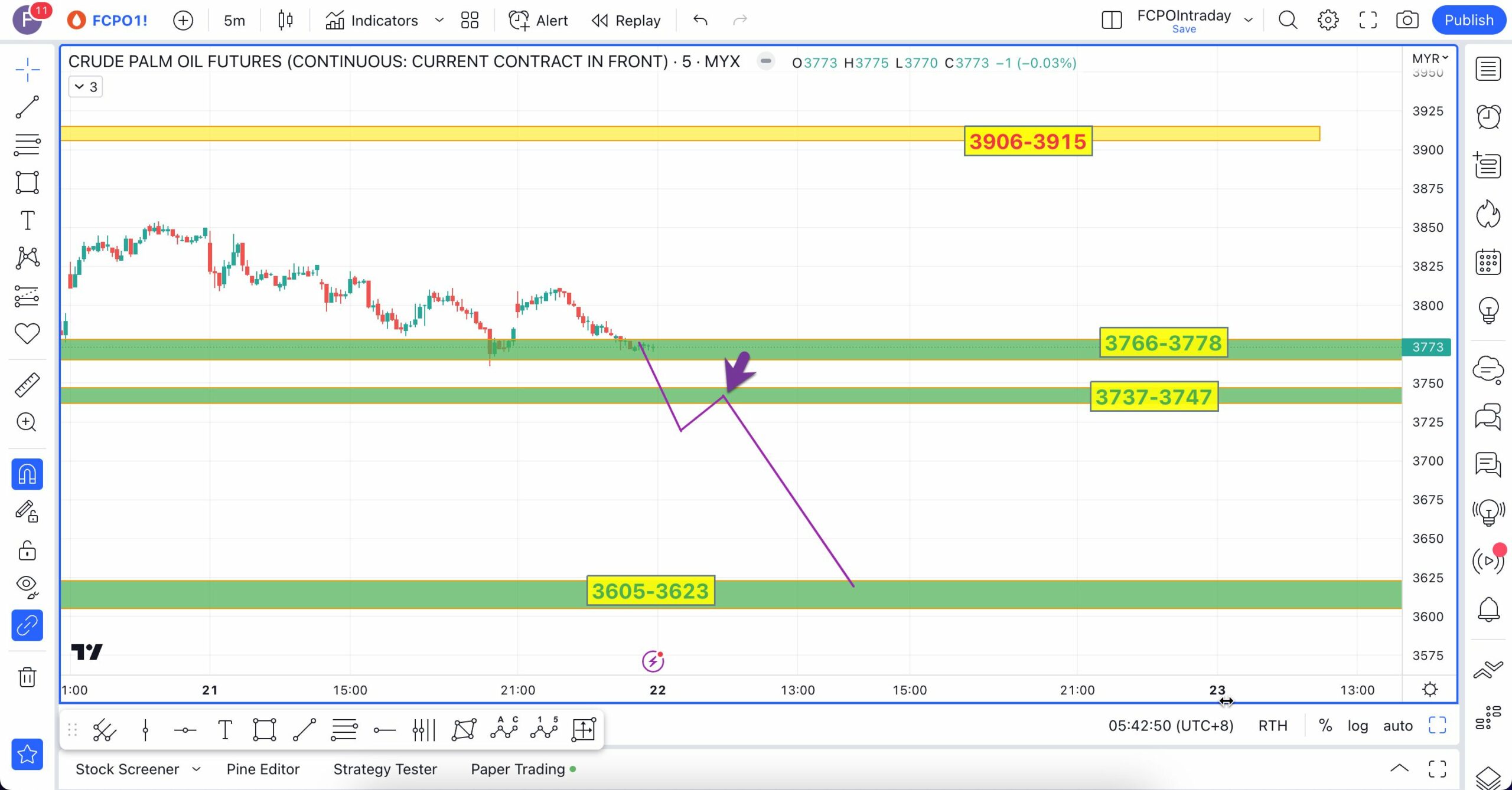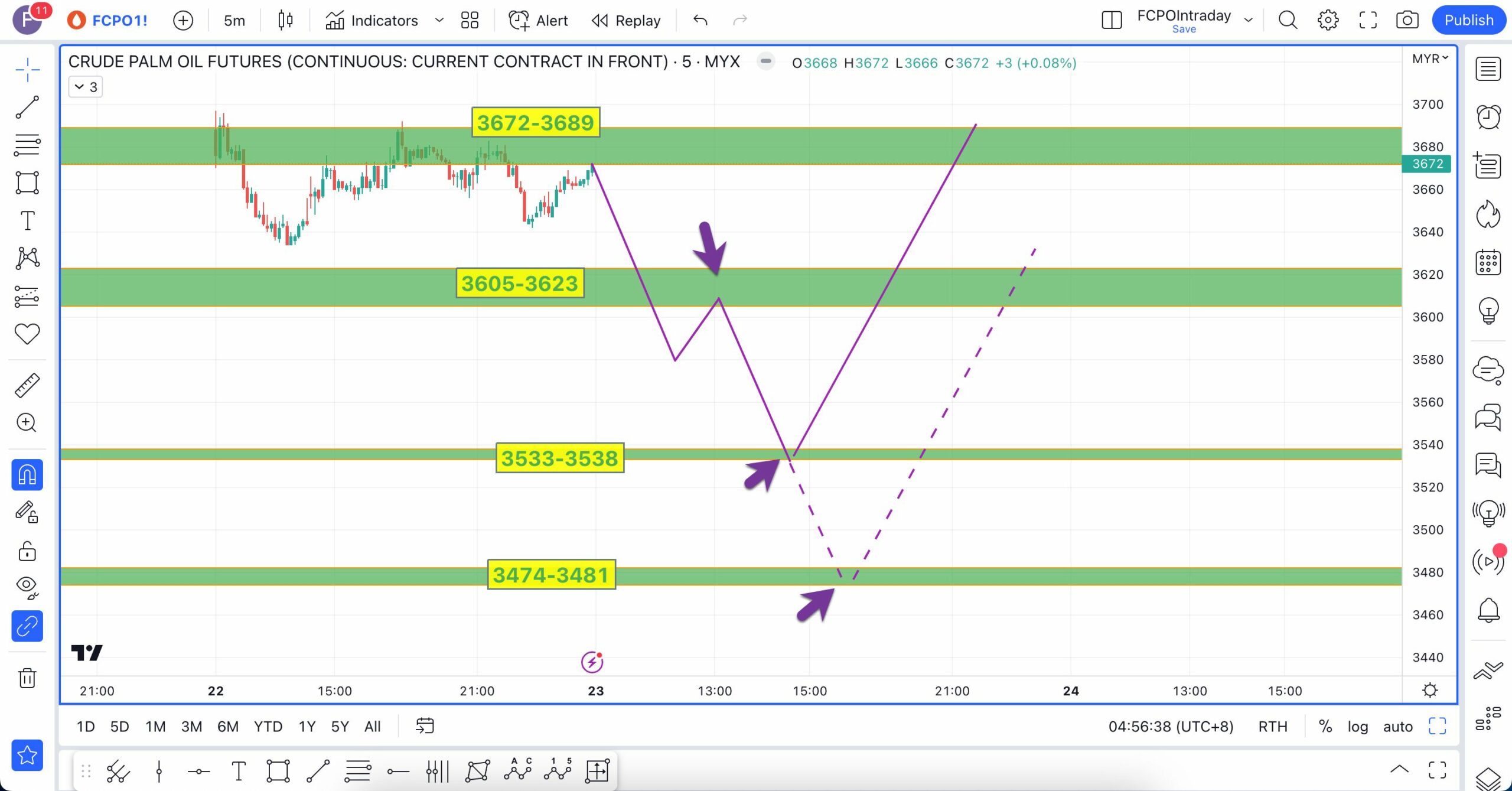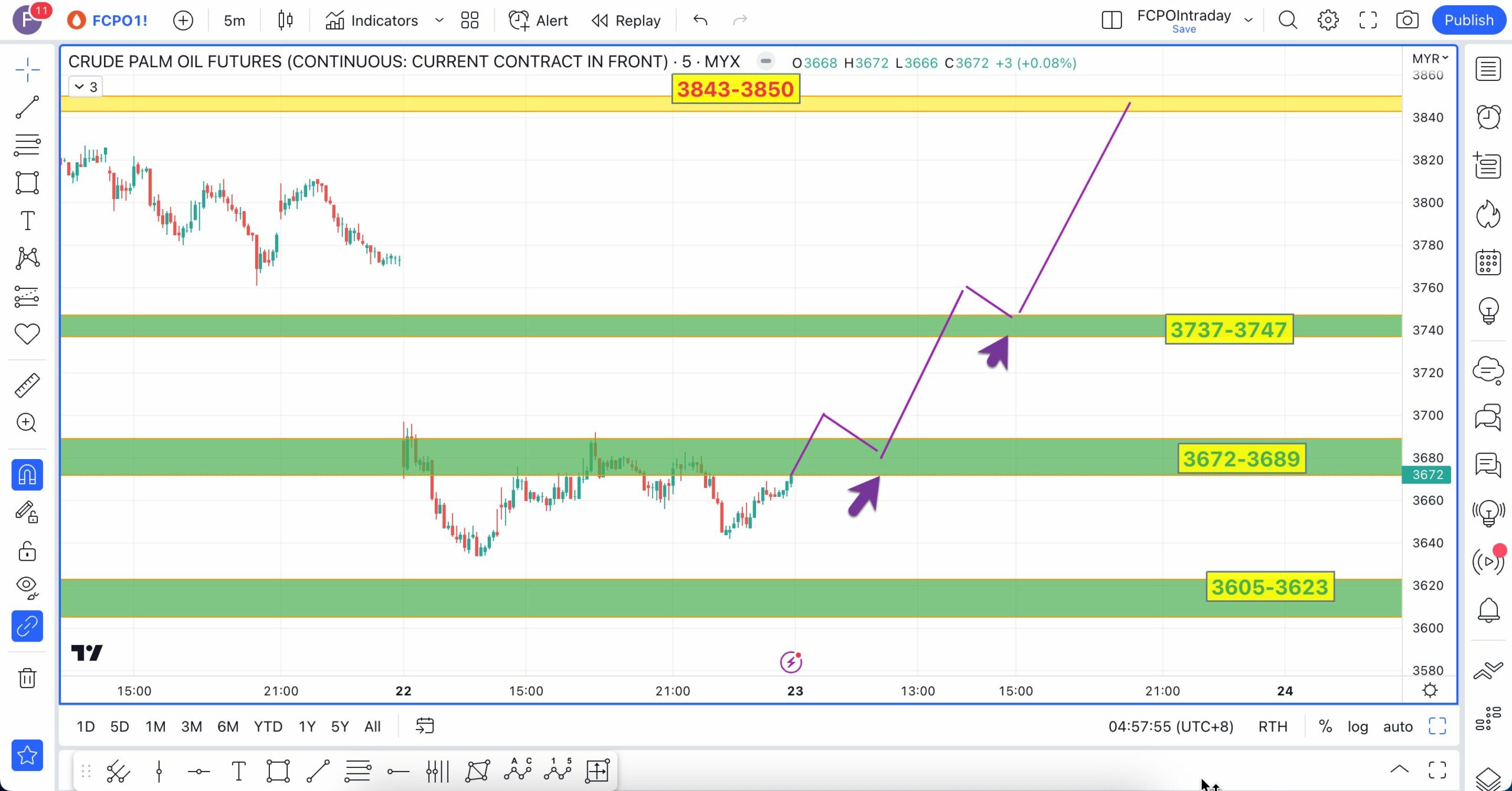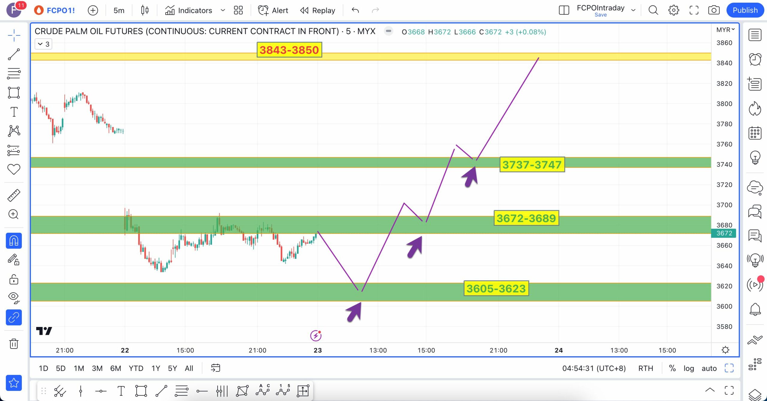 Market follow movement yang dianalisa dengan naik atas support zone 3533-3538, pullback dan naik. Namun tak dapat kekalkan momentum kenaikan setelah break atas zone resistance 3609-3614. Anyway, it was 100 ticks++ movement at the beginning yang mana, intraday trader dah boleh dapat benefit dari movement awal.