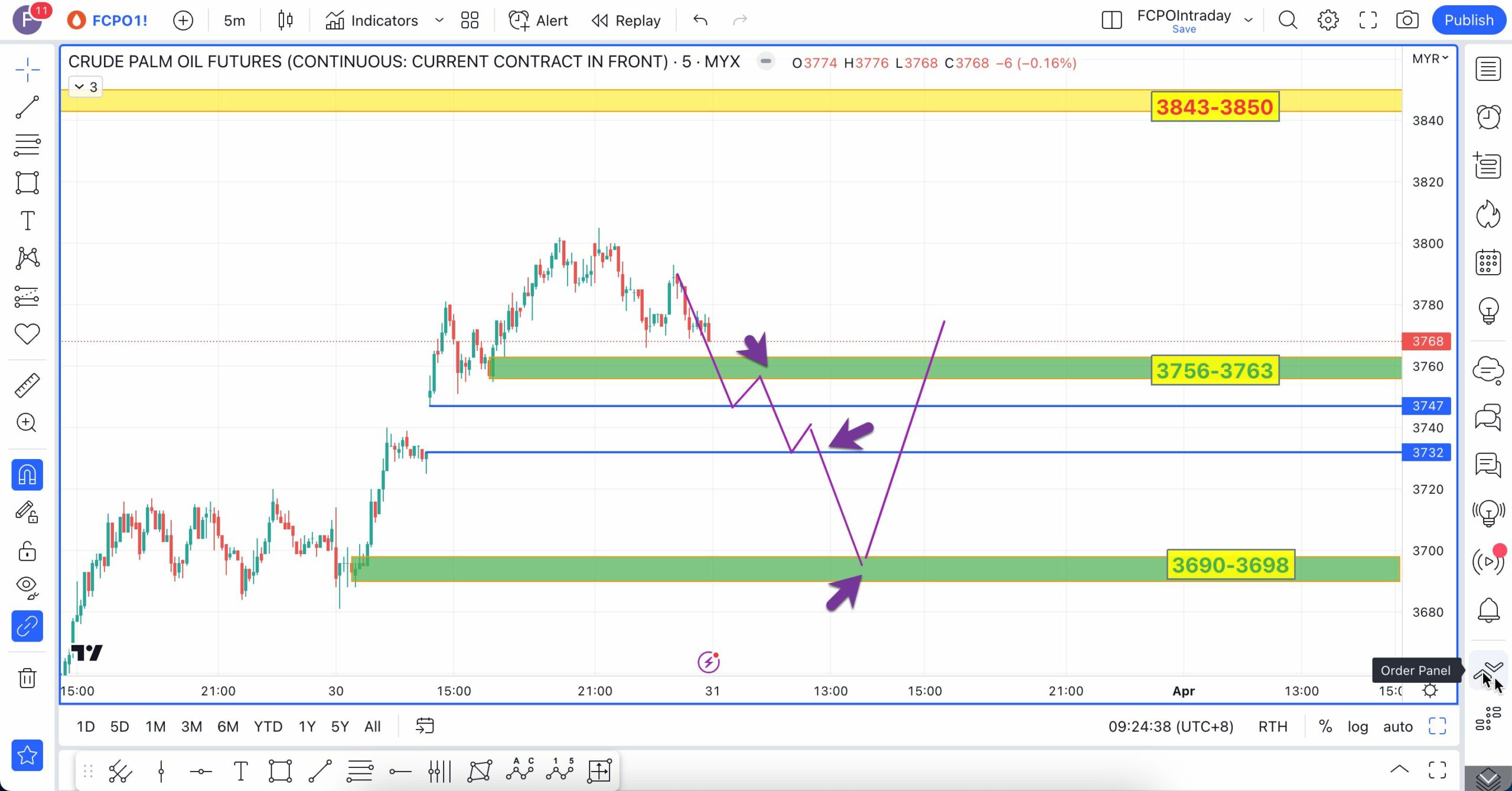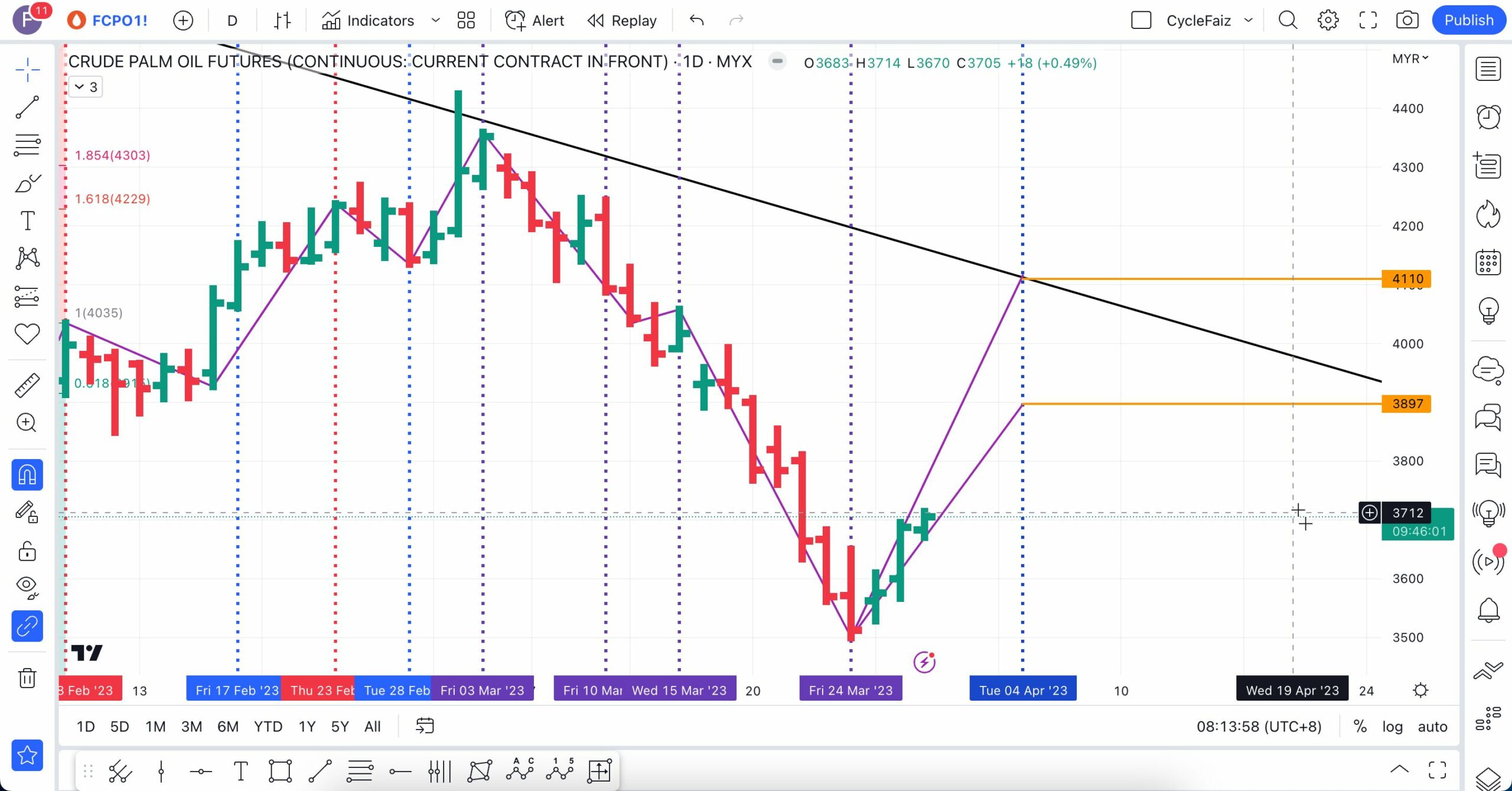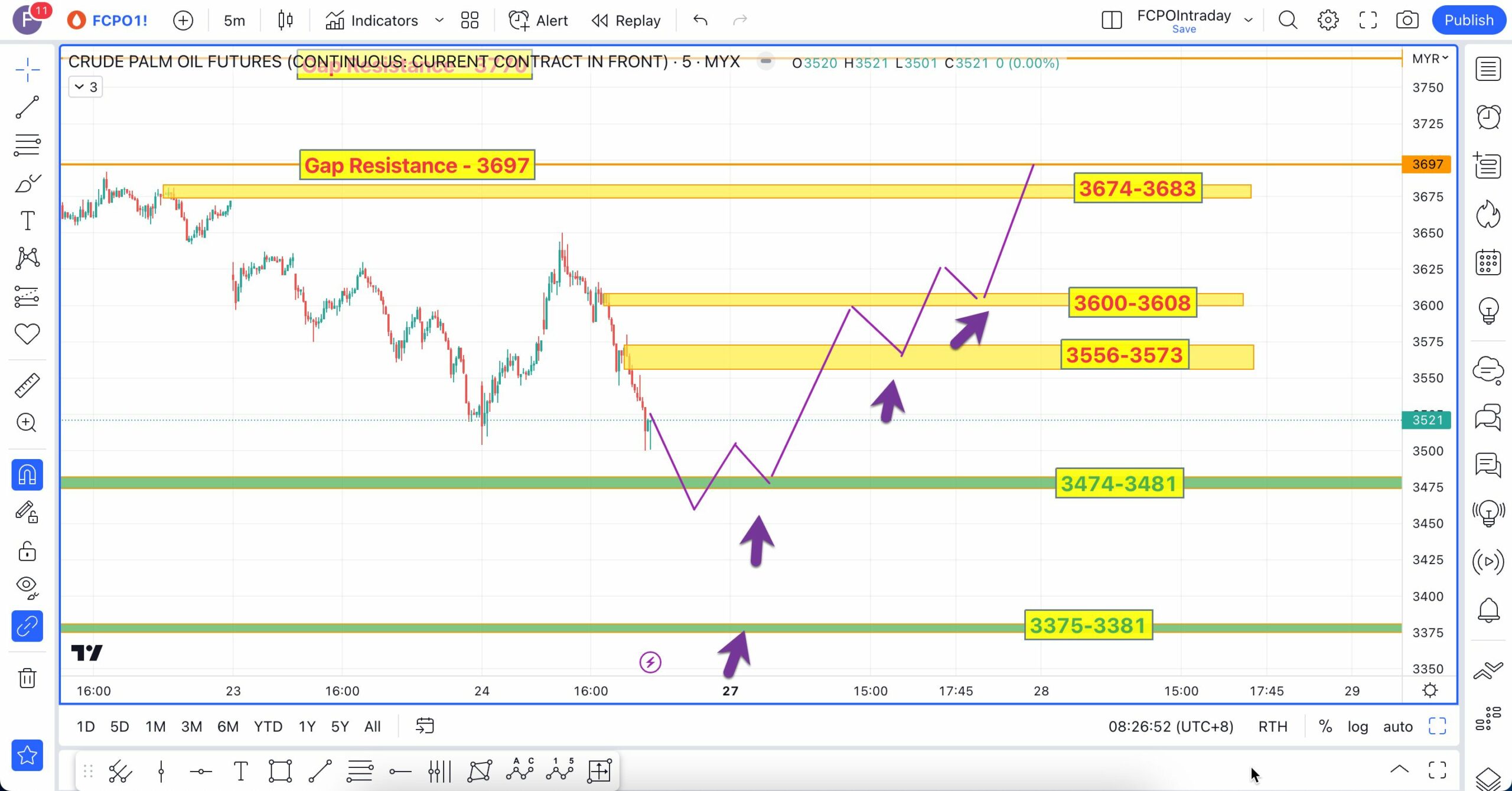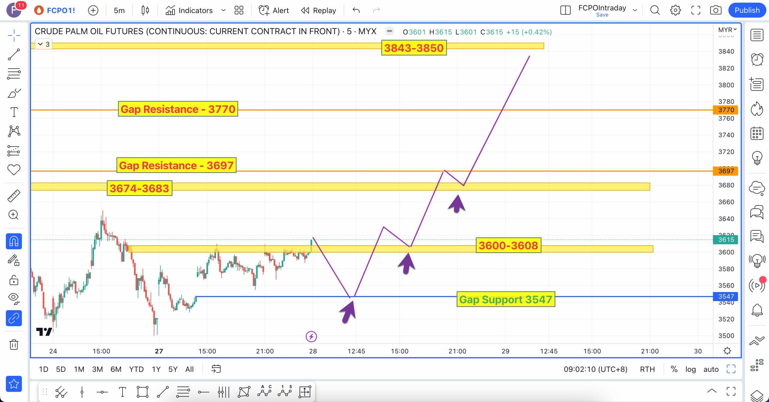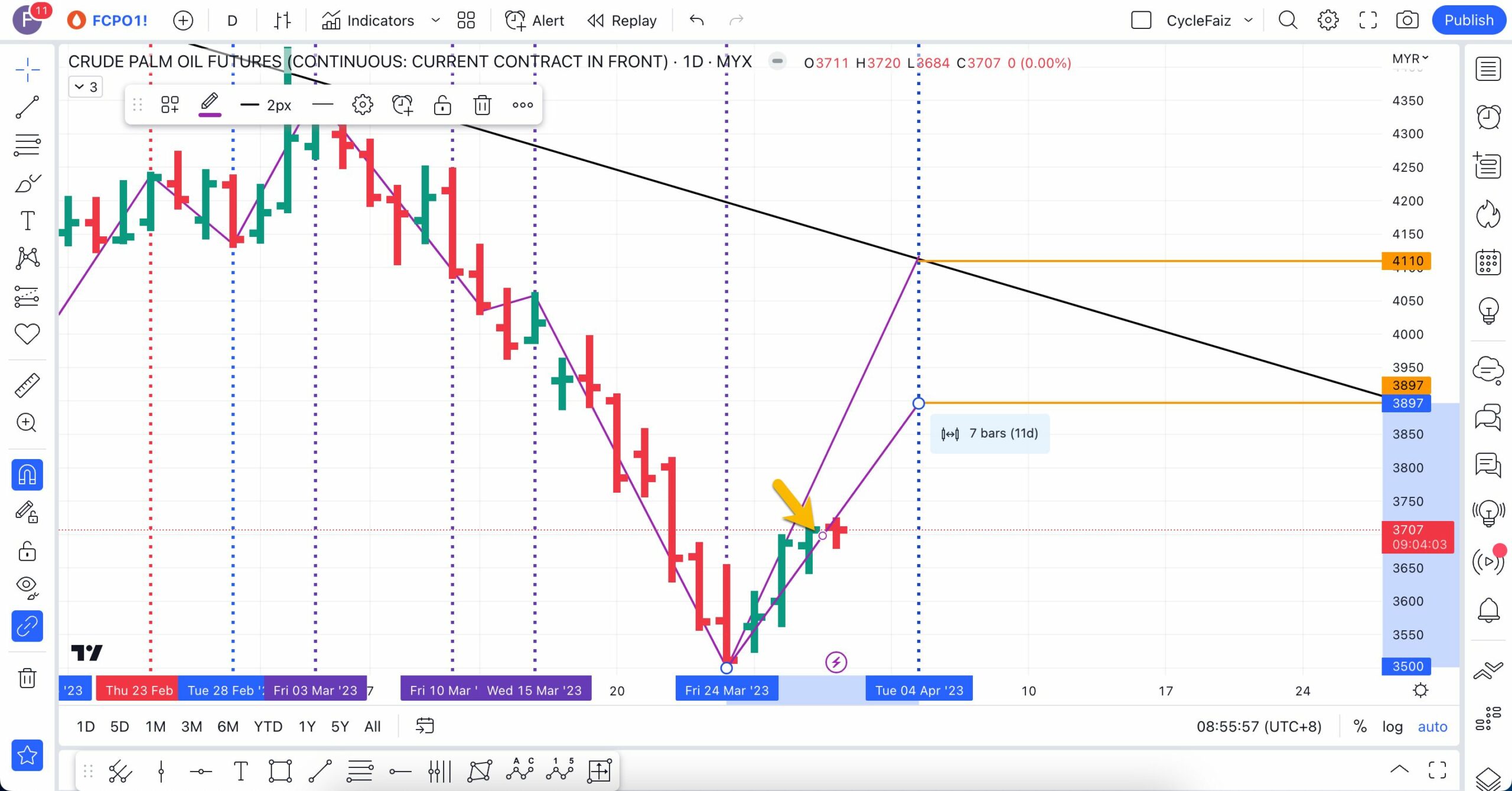 Jangkaan price movement pullback sekitar gap resistance 3770 dan ke atas. Namun due to cycle logic, ada kemungkinan akan berlaku penurunan sebelum naik semula.